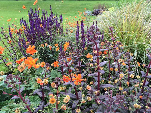 Vibrant planting at a farmhouse in Lincolnshire